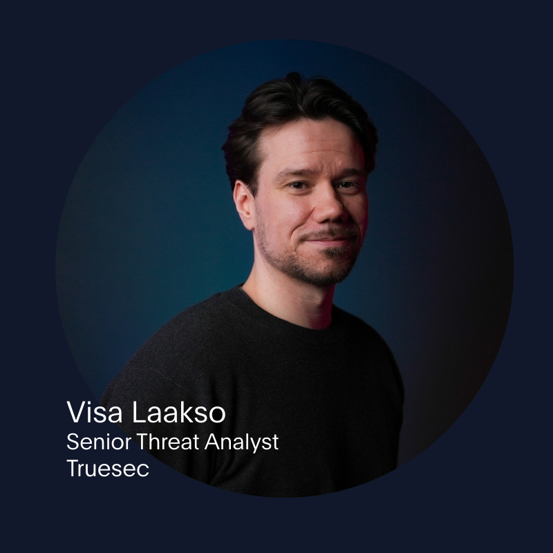 Visa Laakso toimii Truesecilla Senior Threat Analystina. Hän on työskennellyt organisaatioiden tietoturvan parissa kahdeksan vuoden ajan ja sitä ennen verkkoinsinöörinä. Teknisen työn rinnalla häntä kiehtoo erityisesti se, miten ihmiset, toimintamallit ja päätökset vaikuttavat tietoturvaan. Visa käy puheenvuorossaan läpi, miten kyberuhkat ovat muuttuneet lyhyessä ajassa, miten tekoäly vaikuttaa, ja millaiset kyberuhkat vaanivat ihan jokaista.