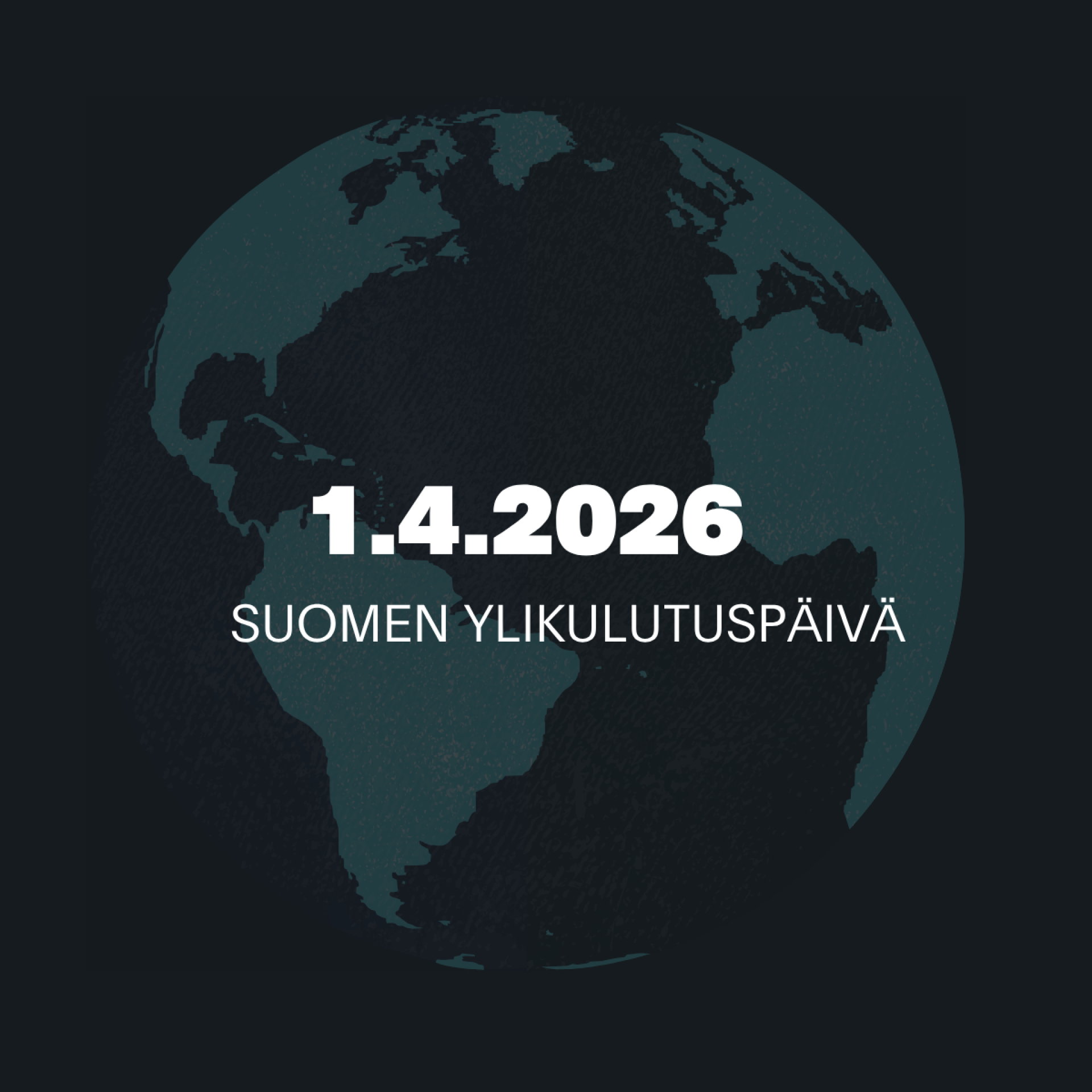 Tämä ei valitettavasti ole aprillipila. Tänä vuonna me suomalaiset kulutimme oman osuutemme maapallon luonnonvaroista tasan kolmessa kuukaudessa. Kaikki kulutus 1.4.2026 eteenpäin on ekovelkaa ympäristölle. Suomen sijoitus ei ole imarteleva, sillä olemme listalla sijalla 16, neljä päivää Ruotsia edellä. Suomi on vuodesta toiseen eniten uusiutuvia luonnonvaroja kuluttavien maiden joukossa. Tässä korkea sijoitus ei ole mairitteleva.